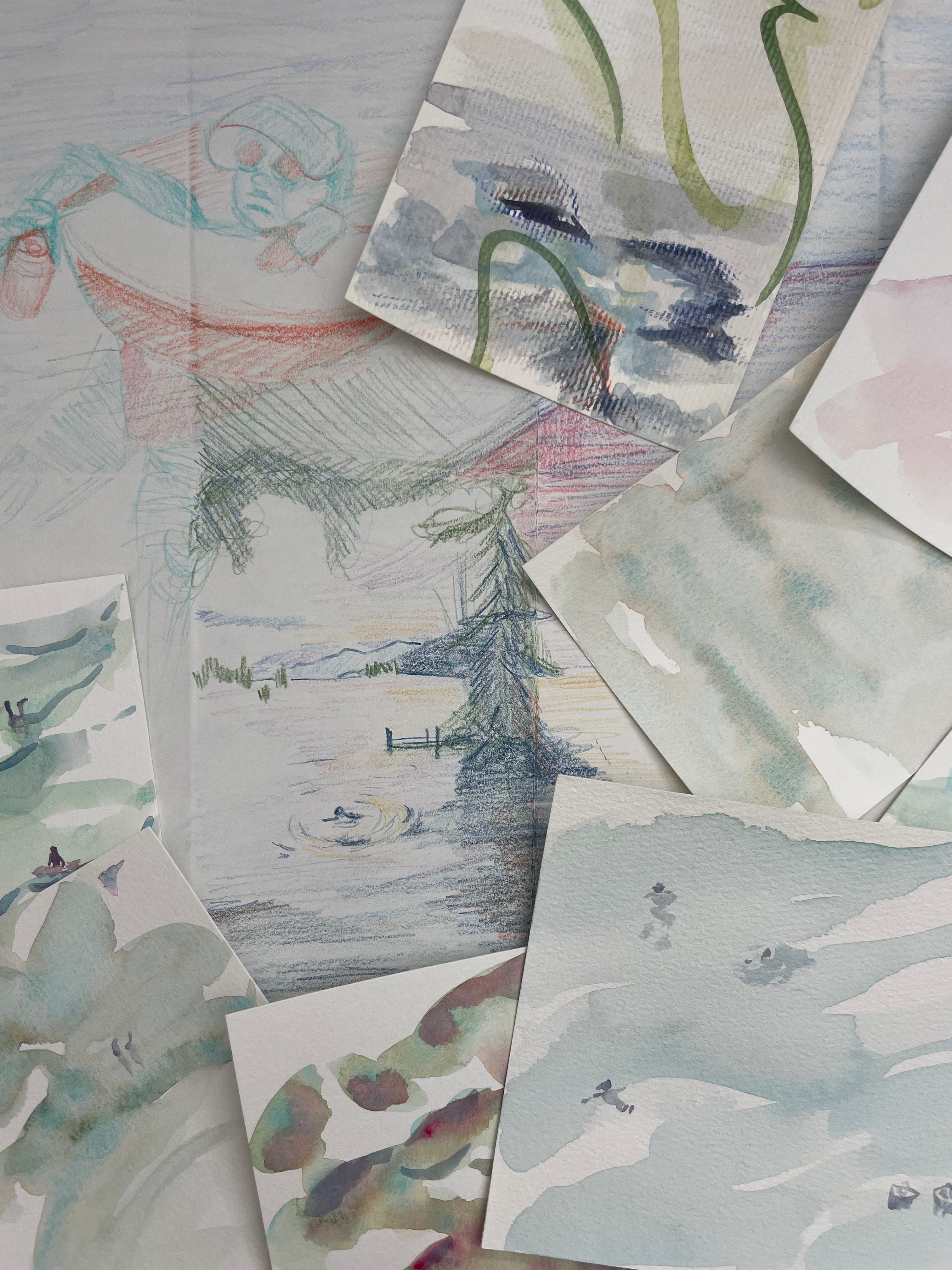 And finally, some snapshots of recently completed paintings that I’ll be bringing with me to Colorado as a starting point for my new work and some sketches/studies I’ve started in preparation.