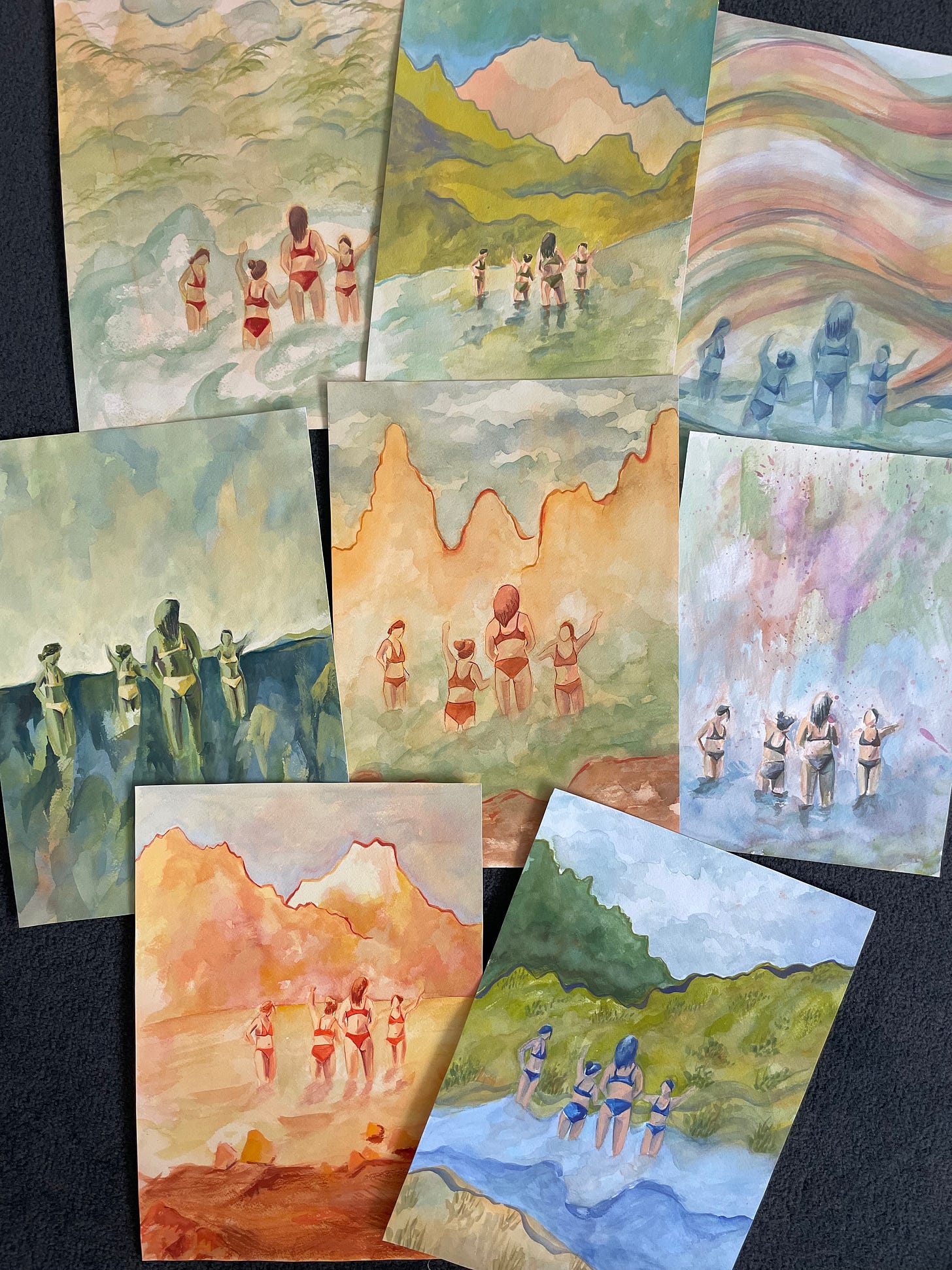 I have made some decisions about what I’m going to paint (larger, triptychs, small human bodies in sweeping bodies of water), and this week, I’m thinking about why…questions that will probably carry me into these two weeks of workshops.